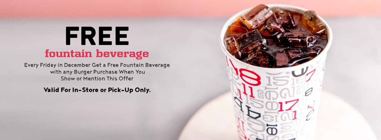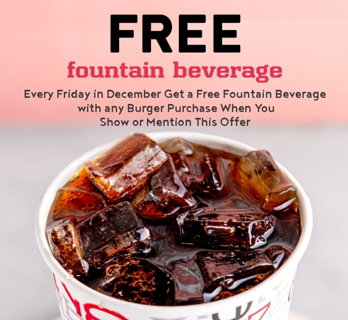 December Free Fridays Features a Free Fountain Beverage With Any Burger Purchase Made In-Store