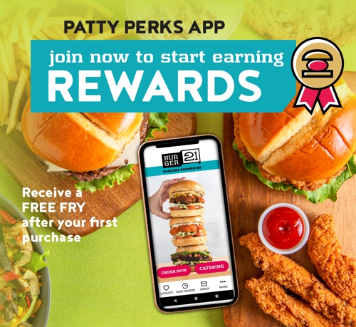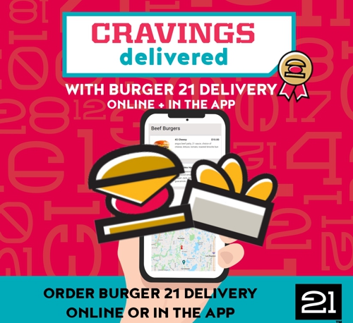 Order online or in the B21 app for Burger 21 delivery!
