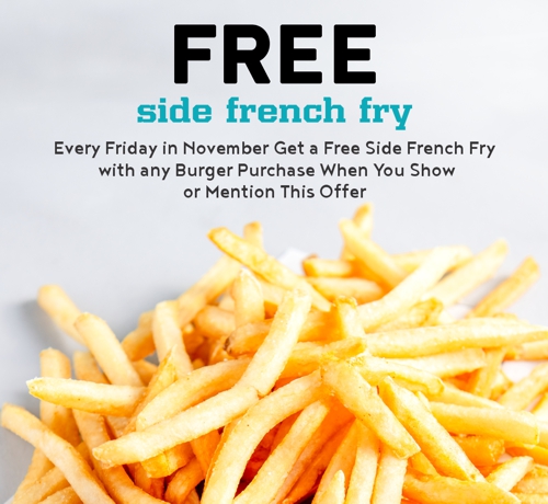 November Free Fridays Features a Free Side Fry With Any Burger Purchase Made In-Store